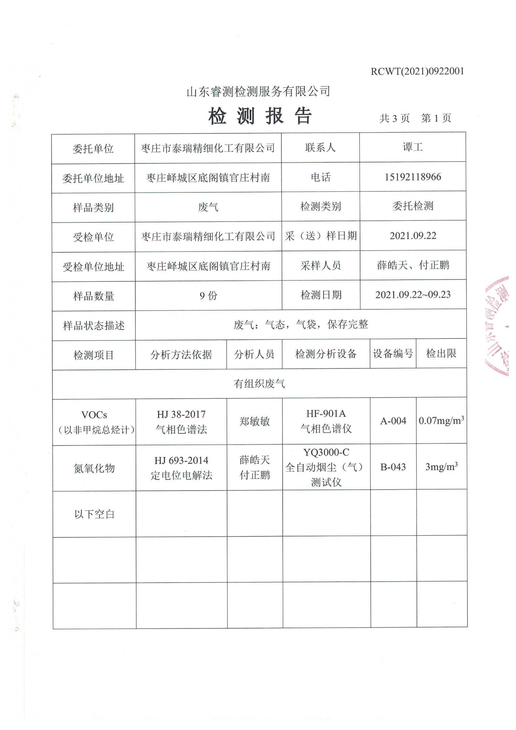 2021年9月份自行檢測報(bào)告