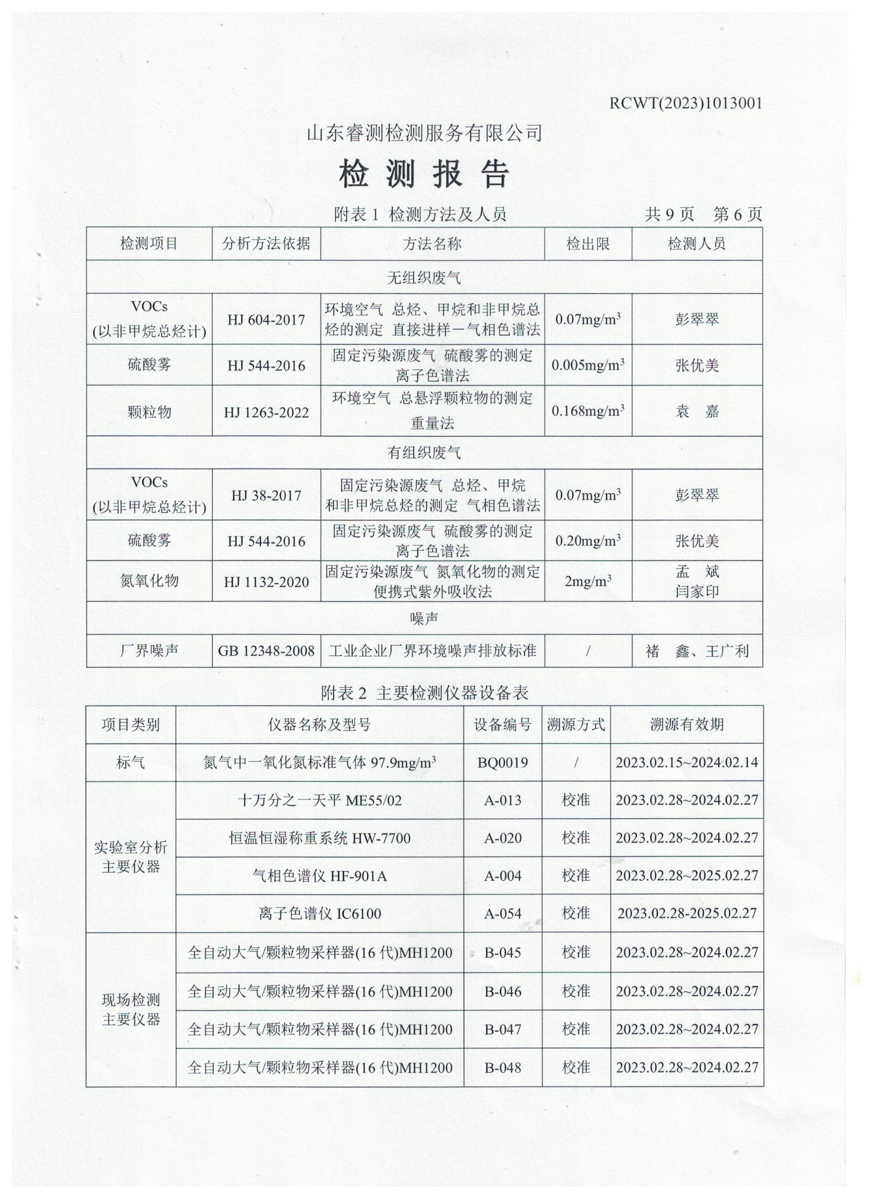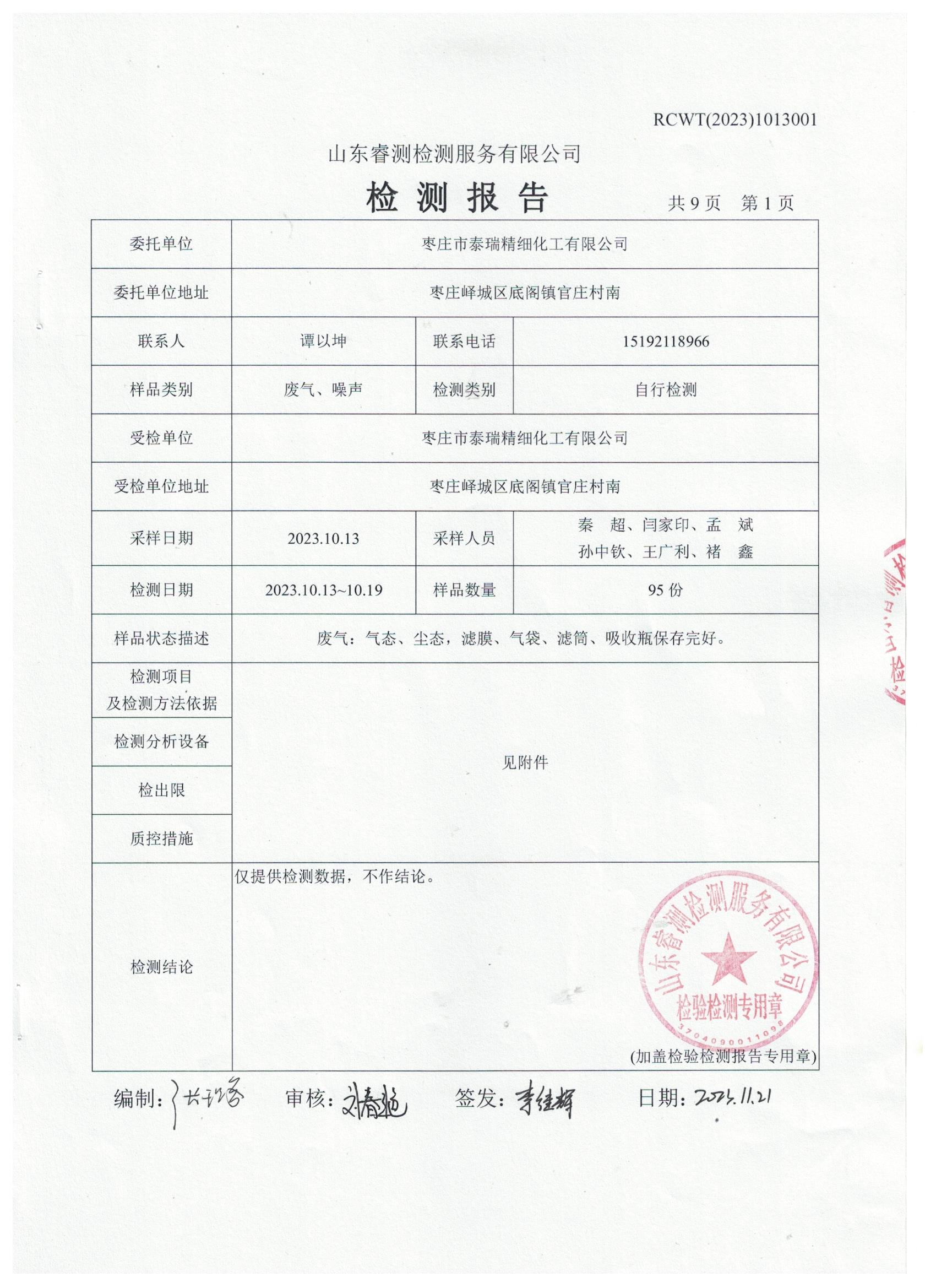 2023年第4季度(10月份)檢測報(bào)告